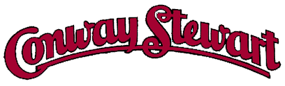 Rolled gold ball-clip, flared (Chef hat) crown with black band, Imprinted Conway Stewart.